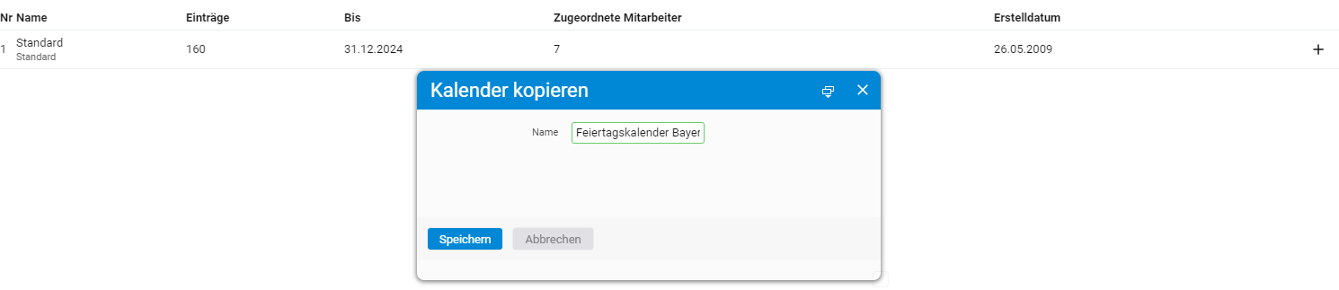Der im System hinterlegte Feiertagskalender muss immer mindestens zwei Jahre in die Zukunft reichen. Wenn Sie Ihren Feiertagskalender